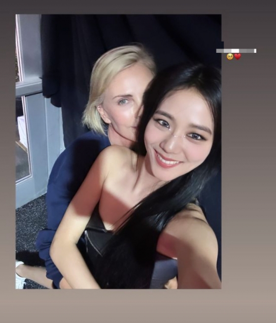 걸그룹 블랙핑크 멤버 지수가 할리우드 배우 샤를리즈 테론과의 우정을 자랑했다.
