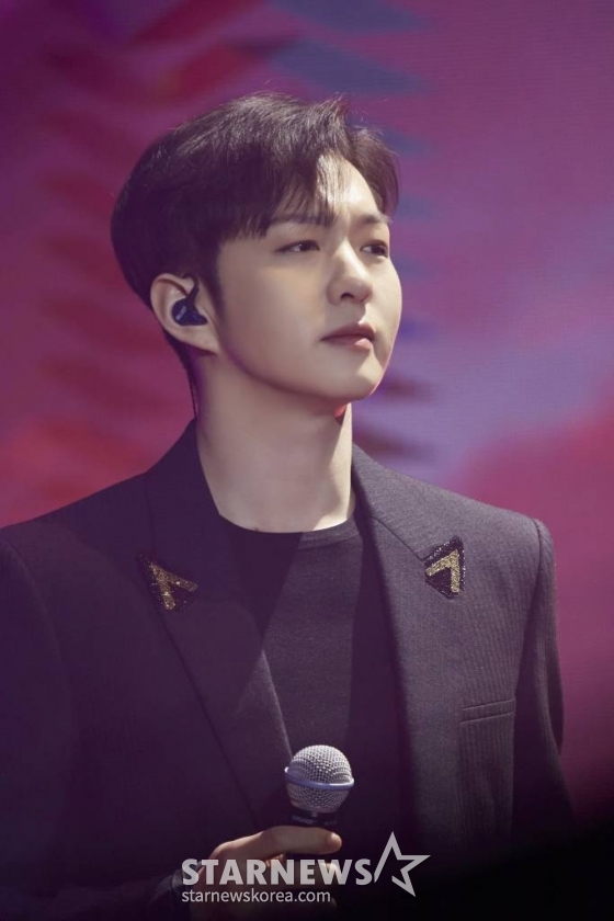 그룹 비투비포유 이창섭이 23일 오후 온라인 생중계로 진행된 2021 BTOB 4U ONLINE CONCERT 'INSIDE'에서 화려한 무대를 선보이고 있다. /사진제공=큐브엔터테인먼트 /사진=이동훈 기자 photoguy@