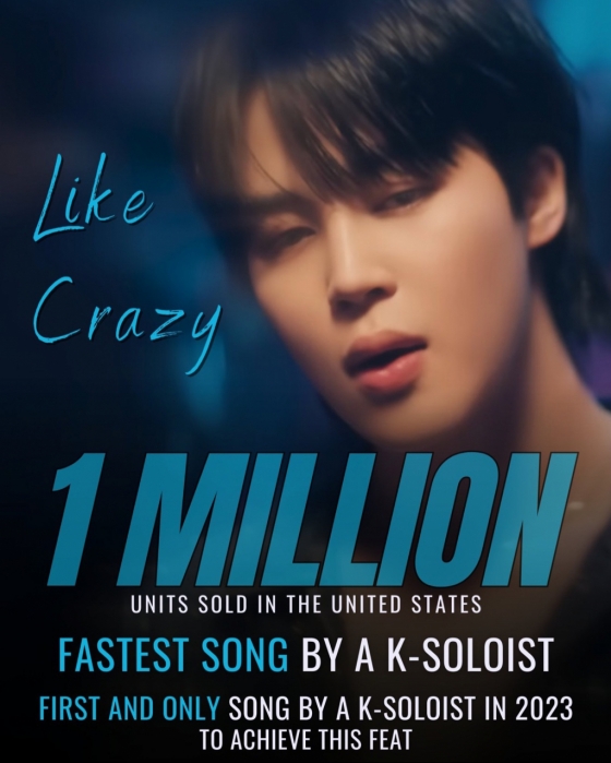 지민의 '라이크 크레이지'는 2023년 발매된 한국 솔로곡 최초 미국에서 100만 유닛 세일즈를 돌파해 미국 레코드 산업협회(RIAA=Recording Industry Association of America)로부터 플레티넘 인증 자격을 받았다.