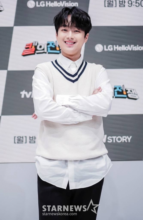 가수 이찬원이 8일 오전 온라인으로 짆애된 LG헬로비전, tvN STORY 예능 '칼의 전쟁' 제작발표회에 참석해 포즈를 취하고 있다. '칼의 전쟁'은 대한민국 팔도 대표 명인들이 각 지역의 명예를 걸고 향토 음식과 식재료를 소개하기 위해 대결을 펼치는 프로그램이다. / 사진제공 = CJ ENM /사진=김창현 기자 chmt@
