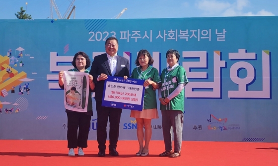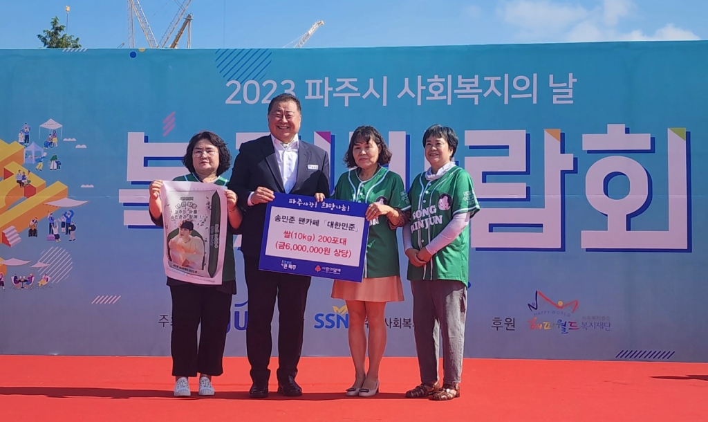 이날 현장에서 팬클럽 회원들은 김경일 파주시장과 함께 "송민준 파이팅"을 외치며 그를 응원했다는 후문이다. 이들은 파주시의 어려운 이웃을 위해 2, 3차 기부도 진행할 예정이다.