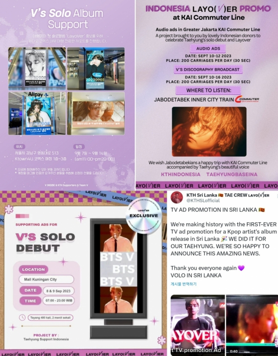 방탄소년단(BTS) 뷔의 첫 솔로 앨범 발매를 축하하는 글로벌 팬들의 특급 서포트가 전 세계에서 이어지고 있다.