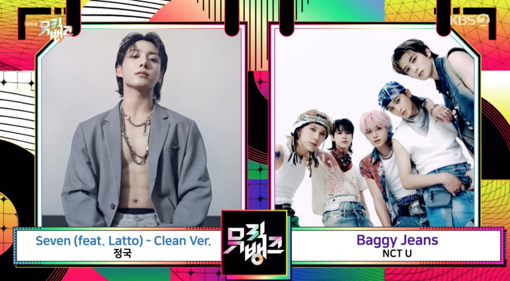 정국은 솔로곡 'Seven'으로, NCT U는 'Baggy Jeans'로 나란히 1위 후보에 이름을 올렸다.