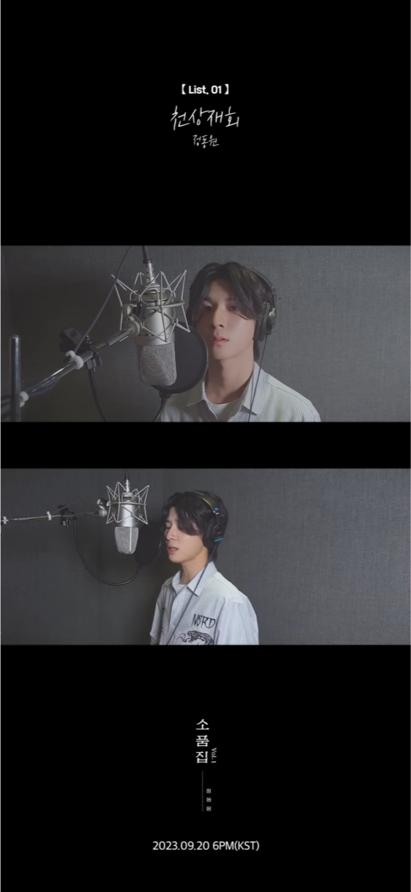지난 9일 정동원은 공식 유튜브 채널을 통해 오는 20일 발매되는 리메이크 미니앨범 '소품집 Vol.1'의 후보곡 라이브 영상을 공개했다.