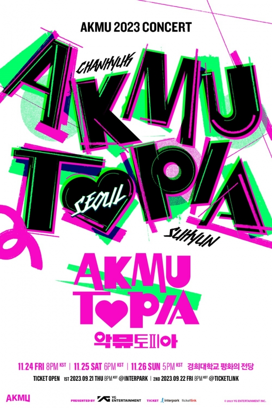 YG 측은 "공연 타이틀 [AKMUTOPIA]는 AKMU와 UTOPIA를 조합, AKMU로만 이뤄지고 AKMU만이 만들 수 있는 이상향의 세계를 뜻한다"며 "그 의미에 걸맞은 AKMU의 과거와 현재 음악 세계를 모두 아우르는 최고의 공연을 선보일 것"이라고 전했다.