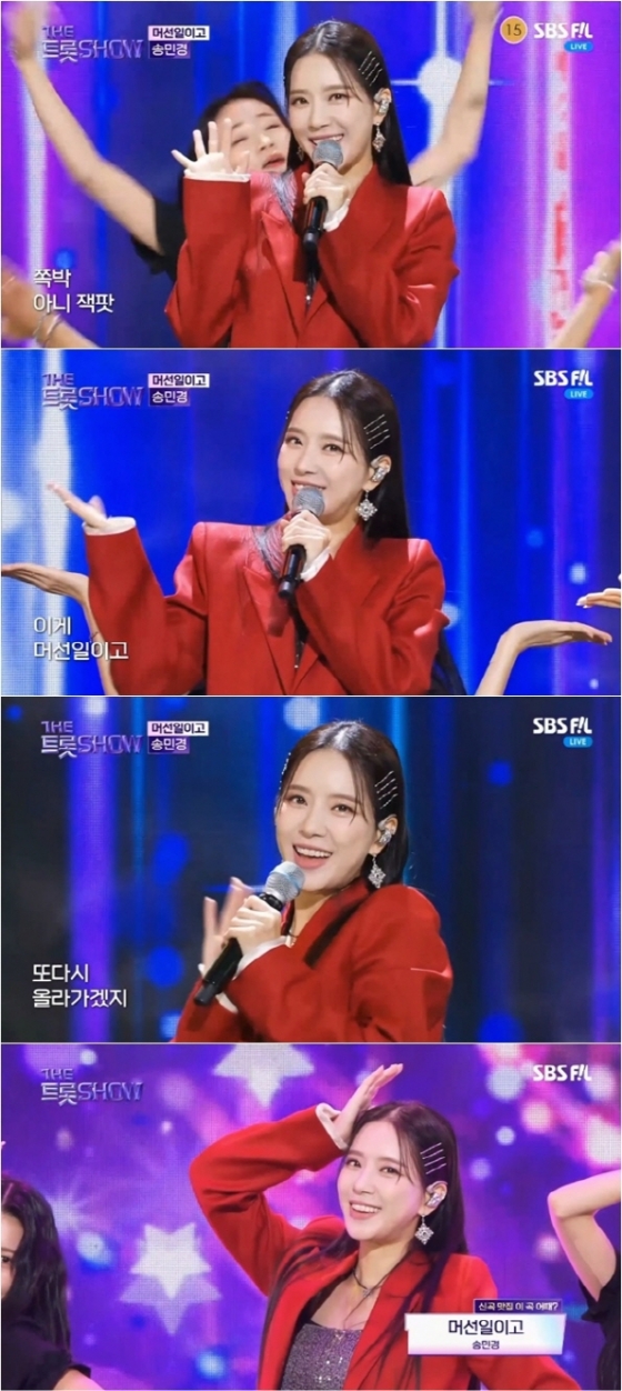 송민경은 지난 25일 방송된 SBS FiL, SBS M '더트롯쇼'에 출연해 중독성 강한 신곡 '머선일이고' 무대를 선보였다.