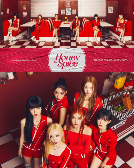 큐브 엔터테인먼트는 27일 0시 공식 SNS 채널을 통해 LIGHTSUM(라잇썸)의 미니 2집 'Honey or Spice'(허니 오어 스파이스)의 첫 번째 콘셉트 'Spice' 버전 단체 콘셉트 이미지를 공개했다.