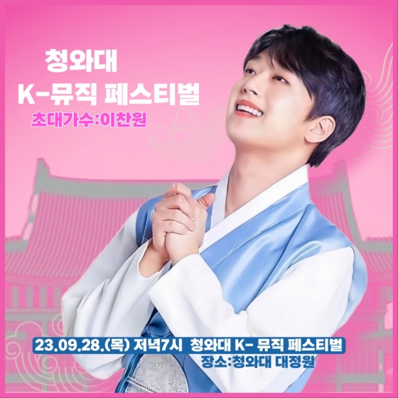 이찬원은 28일 오후 7시 서울 종로구 청와대 대정원 야외 특설무대에서 열리는 '2023 청와대 K-뮤직 페스티벌'에 출연, 무대를 펼친다.