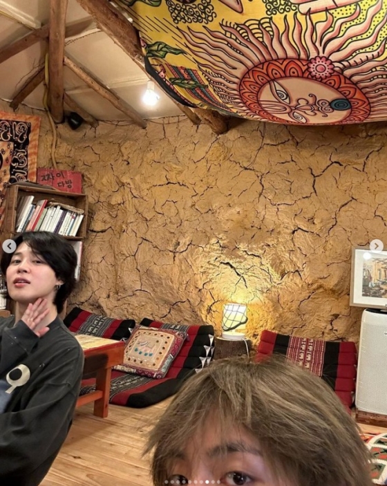 뷔는 편한 자리에서 방탄소년단 지민, 정국과 만난 사진도 공개해 팬들을 반갑게 했다.