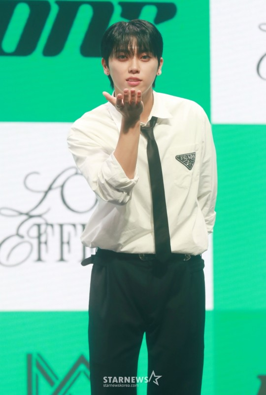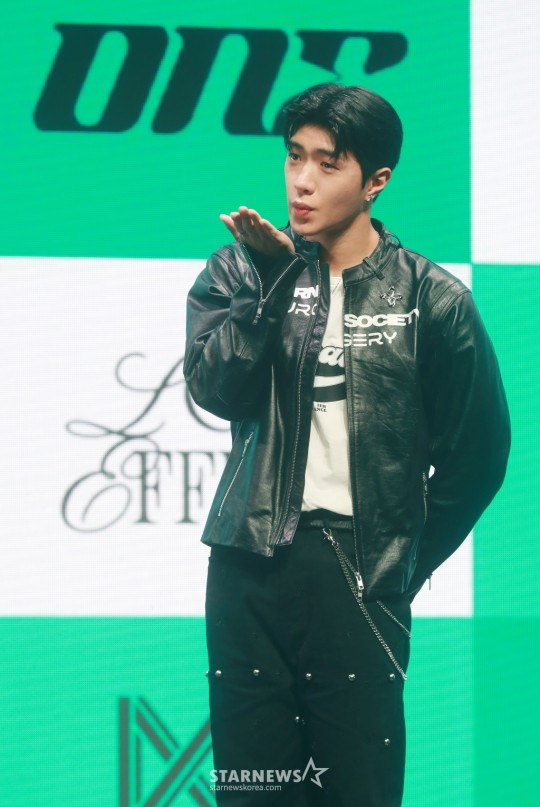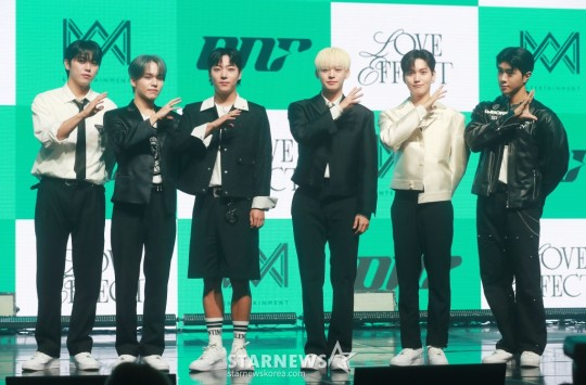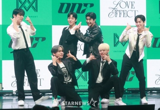 온앤오프(효진, 이션, 제이어스, 와이엇, MK, 유)는 4일 오후 서울 마포구 서교동 신한pLay 스퀘어에서 일곱 번째 미니앨범 '러브 이펙트(LOVE EFFECT)' 발매 기념 쇼케이스를 개최했다.