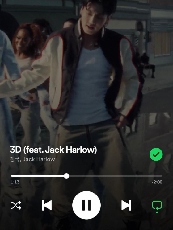 그는 이와 함께 자신이 지난 9월 29일 발매한 두 번째 솔로 싱글 '3D'(feat. Jack Harlow)를 플레이한 화면을 캡처해 보여줬다.