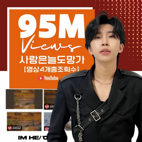 가수 임영웅의 '사랑은 늘 도망가'가 총 9500만 뷰를 달성하며 인기 순항했다.