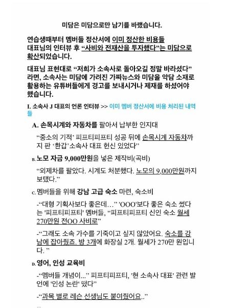 어트랙트가 파장이 커지고 있음에도 "멤버들과의 화해를 원한다"라며 언제든지 활동 재개에 임할 수 있다며 손을 내밀었지만 멤버들은 가족들과 변호인의 뒤에 숨은 채 2개월 동안 침묵하면서 "가수 활동을 안 했으면 안 했지 절대 돌아가지 않는다"라고 초강수를 뒀고 이후 지난 8월 새롭게 개설한 SNS 계정에 자필 편지를 올려 "저희를 사랑해주시는 모든 분들께 심려를 끼쳐드려 죄송하다는 말씀을 하고 싶다. 이번 일을 계기로 소속사와의 관계에서는 잘못된 방식으로 강요돼 왔던 일들이 바로잡히길 원하고 있다. 그 실현을 위해 진실에 입각한 증거와 자료를 수집해 계속 제출하겠다. 잘못된 의혹과 오해가 명확하게 해소될 수 있도록 노력하겠다. 잘못된 의혹과 오해에 따른 과도한 비난을 거둬 주시고 객관적인 사정을 지켜봐 주시길 간절히 부탁드린다. 저희의 간절한 바람은 신뢰할 수 있는 환경에서 진정성 있는 아티스트로 활동하는 것"이라고 전했다.