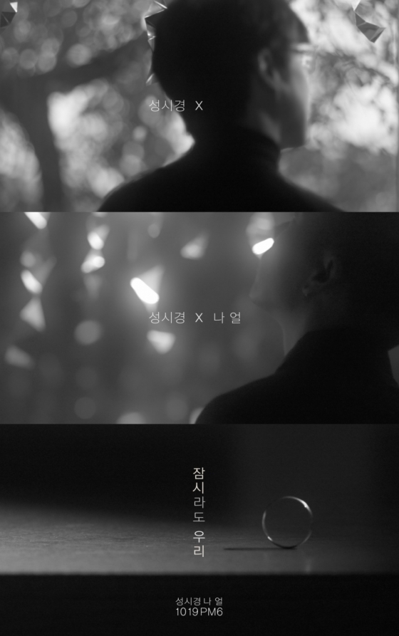 특히 '잠시라도 우리' 싱글 타이틀명과 함께 노래 중 가장 격정적인 부분인 후렴구 일부가 공개됐다. '만나지긴 할까. 어떻게 서롤 기억해줄까'라는 가사와 멜로디가 성시경과 나얼의 감미로우면서도 애절한 목소리로 만나 폭발적인 감동 시너지로 완성돼 완곡에 대한 기대감을 최고조로 끌어올렸다.