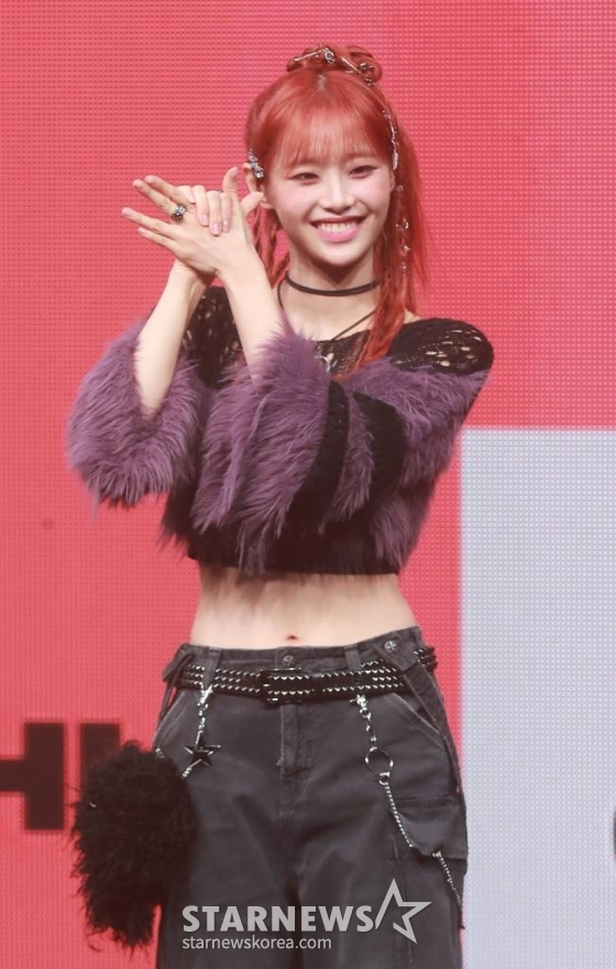가수 츄(CHUU)가 18일 오후 서울 광진구 예스24라이브홀에서 진행된 첫 번째 미니 앨범 'Howl' 발매기념 쇼케이스에서 포즈를 취하고 있다. 아번 앨범에는 동명의 타이틀곡 'Howl'을 비롯래 'Underwater', 'My Palace', 'Aliens', 'Hitchhiker' 등 총 5곡이 수록됐다. /2023.10.18 /사진=이동훈