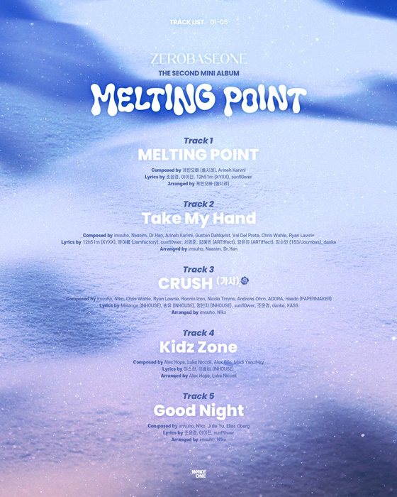 17일 제로베이스원 공식 SNS를 통해 오는 11월 6일 발매되는 두 번째 미니앨범 'MELTING POINT'(멜팅 포인트)의 트랙리스트 이미지가 공개됐다.