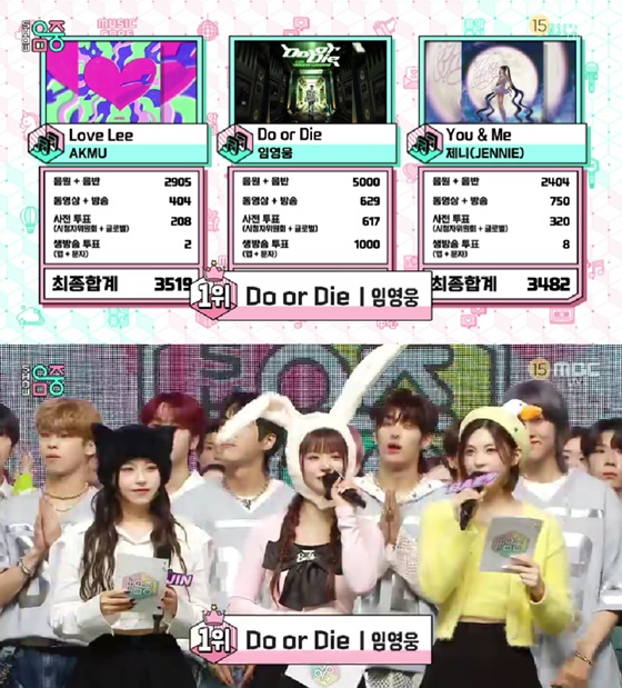 가수 임영웅이 악뮤와 블랙핑크 제니를 꺾고 '음악중심' 1위를 차지했다.