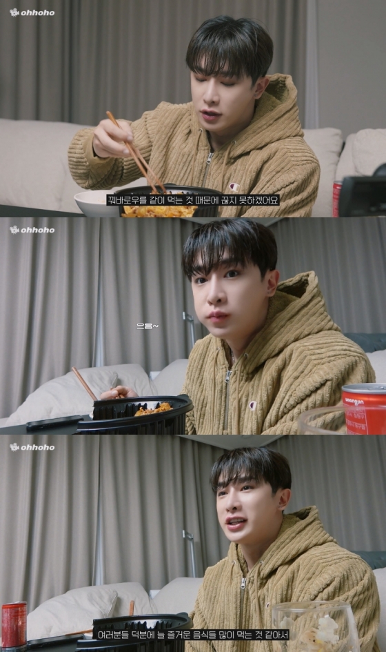 가수 원호(WONHO)가 침샘을 자극하는 폭풍 먹방을 선보였다.
