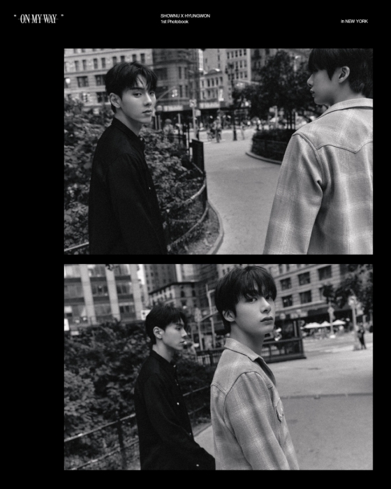 소속사 스타쉽엔터테인먼트는 지난 21일과 22일 몬스타엑스 공식 SNS를 통해 셔누X형원의 첫 포토북 '온 마이 웨이(ON MY WAY)' 두 가지 버전의 콘셉트 포토를 공개했다.