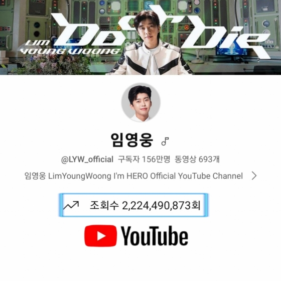 임영웅 공식 유튜브 채널 '임영웅'은 10월 27일 총조회수 22억 2000만 뷰를 넘어섰다.