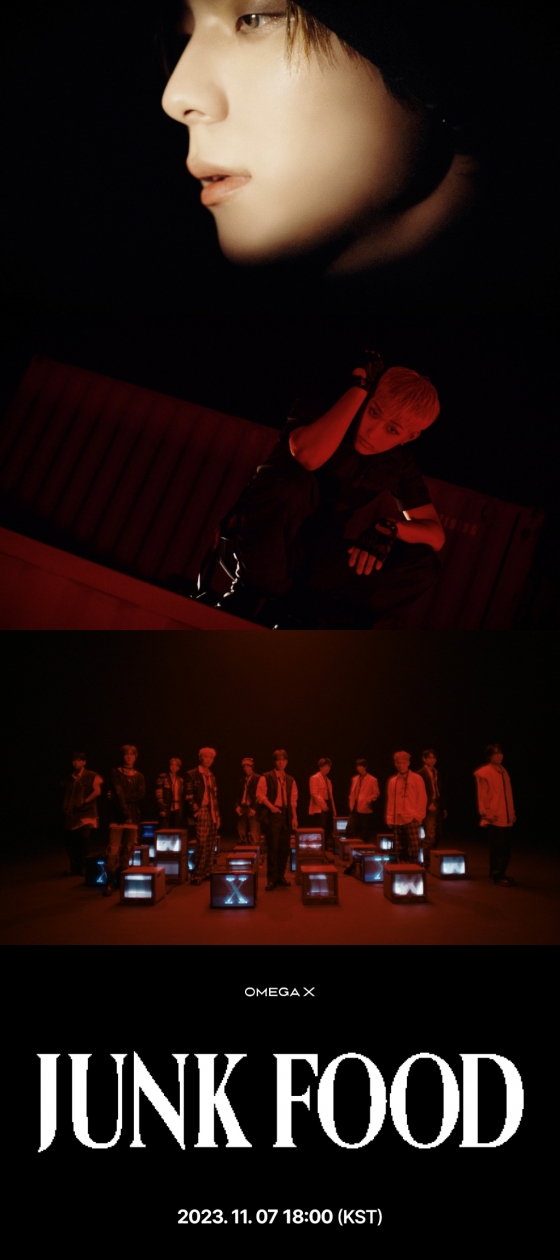 오메가엑스(재한, 휘찬, 세빈, 한겸, 태동, XEN, 제현, KEVIN, 정훈, 혁, 예찬)는 3일 공식 SNS 채널을 통해 세 번째 미니앨범 'iykyk(if you know, you know)'(이프 유 노, 유 노) 타이틀곡 'JUNK FOOD(정크 푸드)'의 첫 번째 뮤직비디오 티저를 공개했다.