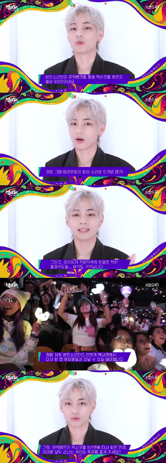 뷔는 또 "방탄소년단도 언젠가 멕시코에서 다시 한번 아미 분들과 만나고 싶다. 여러분 모두 신나는 K-팝 축제를 즐겨주기 바란다"고 전했다.