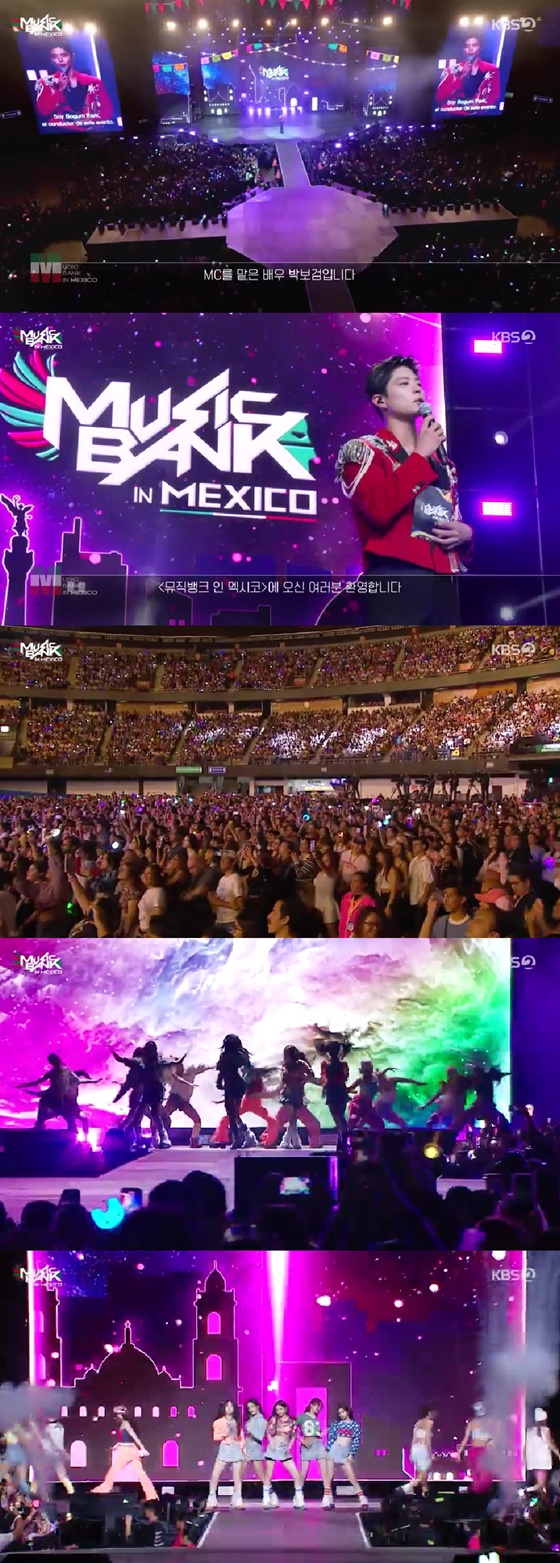 5일 방송된 KBS 2TV '뮤직뱅크 인 멕시코'는 '뮤직뱅크' 월드투어의 17번째 공연으로 멕시코 현지 팬 1만 5천만 명이 자리했다. MC 박보검을 필두로 뉴진스, (여자)아이들, 있지, 스테이씨, AB6IX, TNX 등 총 6팀의 글로벌 열풍을 이끄는 K팝 그룹이 총출동했다.