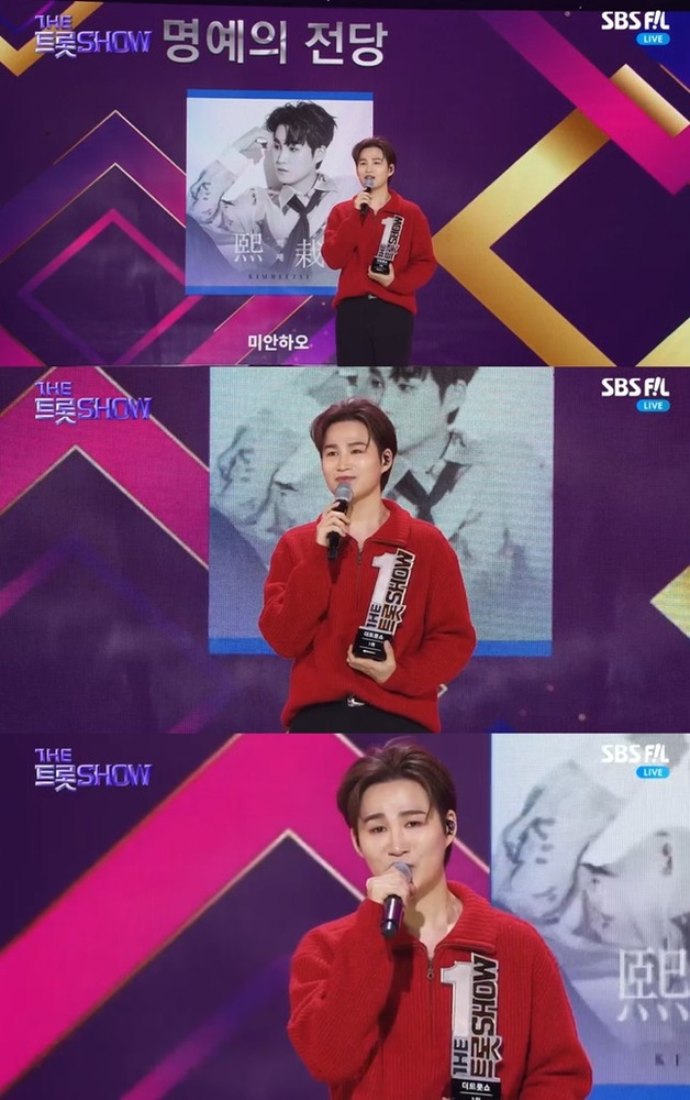 김희재는 지난 6일 오후 8시 방송된 SBS FiL, SBS M '더트롯쇼' 101회에서 '미안하오'로 1위를 달성, 98, 99회에 이어 3주 연속 1위 트로피를 거머쥐게 됐다.