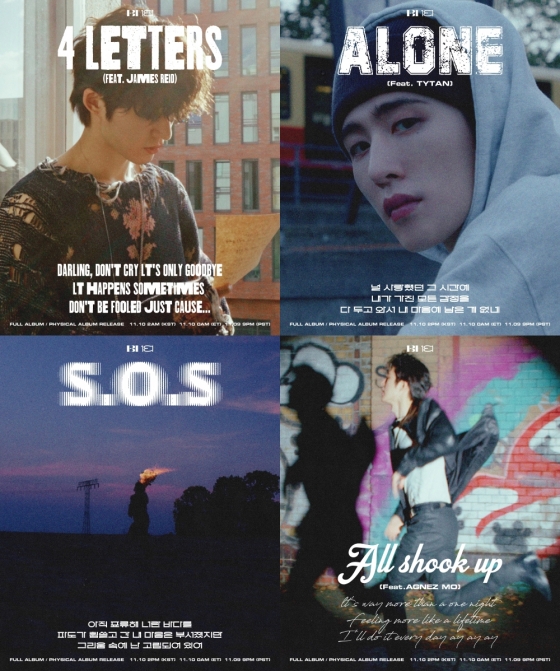 리릭 포스터, 트랙 필름은 이번 EP에 수록된 '4 Letters (포 레터스)', 'Alone (얼론)', 'S.O.S', 'All Shock Up (올 쇼크 업)' 등 4곡의 가사, 음원 일부를 각각 담고 있다. 이와 함께 각 트랙의 서로 다른 무드와 메시지를 표현하는 비아이의 모습이 그려졌다.