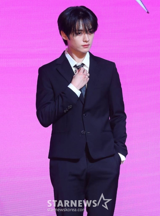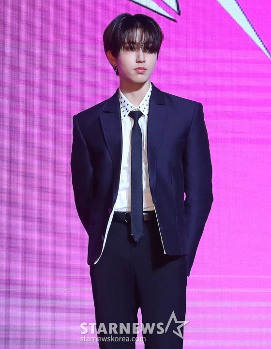 그룹 스트레이 키즈(Stray Kids) 아이엔이 10일 오전 서울 영등포구 여의도동 콘래드 서울에서 진행된 새 미니 앨범 '樂-STAR'(락스타) 발매 기념 쇼케이스에 참석해 포즈를 취하고 있다. 스트레이 키즈의 새 미니 앨범 '樂-STAR'는 '어떤 상황에서도 우리의 락(樂)은 계속된다'는 스트레이 키즈의 메시지와 자신감을 표현했다. 타이틀곡 '락 (樂)'은 매 앨범 곡 작업을 도맡은 그룹 내 프로듀싱 팀 쓰리라차(3RACHA) 방찬, 창빈, 한이 직접 완성해 고유한 음악적 개성을 듬뿍 녹였다. 후렴구의 반복되는 멜로디와 락(Rock)적인 요소가 곡에 강렬함을 더하고 동음이의어를 활용한 흥미로운 노랫말로 K팝 팬들의 흥을 돋울 예정이다. 2023.11.10 /사진=김창현