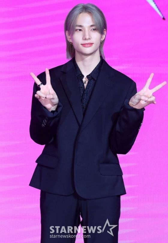 그룹 스트레이 키즈(Stray Kids) 한이 10일 오전 서울 영등포구 여의도동 콘래드 서울에서 진행된 새 미니 앨범 '樂-STAR'(락스타) 발매 기념 쇼케이스에 참석해 포즈를 취하고 있다. 스트레이 키즈의 새 미니 앨범 '樂-STAR'는 '어떤 상황에서도 우리의 락(樂)은 계속된다'는 스트레이 키즈의 메시지와 자신감을 표현했다. 타이틀곡 '락 (樂)'은 매 앨범 곡 작업을 도맡은 그룹 내 프로듀싱 팀 쓰리라차(3RACHA) 방찬, 창빈, 한이 직접 완성해 고유한 음악적 개성을 듬뿍 녹였다. 후렴구의 반복되는 멜로디와 락(Rock)적인 요소가 곡에 강렬함을 더하고 동음이의어를 활용한 흥미로운 노랫말로 K팝 팬들의 흥을 돋울 예정이다. 2023.11.10 /사진=김창현
