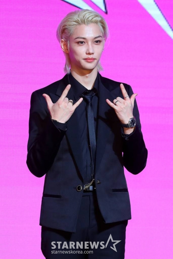 그룹 스트레이 키즈(Stray Kids) 필릭스가 10일 오전 서울 영등포구 여의도동 콘래드 서울에서 진행된 새 미니 앨범 '樂-STAR'(락스타) 발매 기념 쇼케이스에 참석해 포즈를 취하고 있다. 스트레이 키즈의 새 미니 앨범 '樂-STAR'는 '어떤 상황에서도 우리의 락(樂)은 계속된다'는 스트레이 키즈의 메시지와 자신감을 표현했다. 타이틀곡 '락 (樂)'은 매 앨범 곡 작업을 도맡은 그룹 내 프로듀싱 팀 쓰리라차(3RACHA) 방찬, 창빈, 한이 직접 완성해 고유한 음악적 개성을 듬뿍 녹였다. 후렴구의 반복되는 멜로디와 락(Rock)적인 요소가 곡에 강렬함을 더하고 동음이의어를 활용한 흥미로운 노랫말로 K팝 팬들의 흥을 돋울 예정이다. 2023.11.10 /사진=김창현