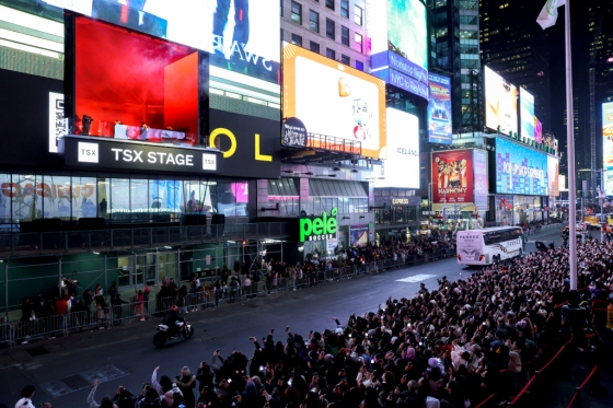 뉴욕의 타임스스퀘어가 '글로벌 팝스타' 정국의 게릴라 공연으로 들썩였다.