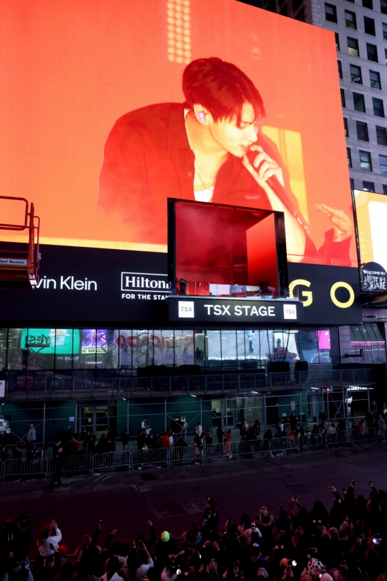 TSX는 맨해튼의 심장부인 타임스스퀘어 브로드웨이에 위치한 야외 상설공연장으로, 지난 7월에 개설됐으며 거대한 LED가 열리면 무대가 등장한다. 정국은 7월 TSX 개설 행사에서 미국의 래퍼 겸 싱어송라이터 포스트 말론(Post Malone)이 공연한 이후 두 번째 아티스트로 이 무대에 서며 전 세계적인 인기를 입증했다.