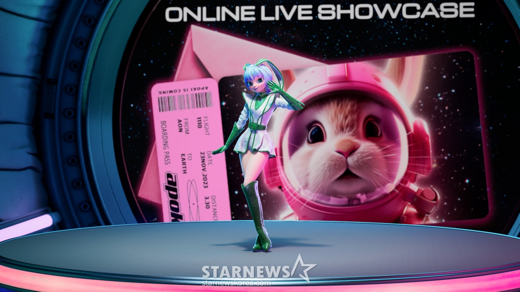 버추얼 아티스트 아뽀키(APOKI)가 10일 오후 온라인으로 진행된 첫 번째 정규앨범 '어스 스페이스 타임(Earth Space Time)' 발매 기념 쇼케이스에서 포즈를 취하고 있다.