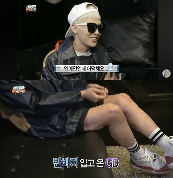 캡처에는 지드래곤이 반바지를 입고 나타난 가운데 다리털이 없이 매끈한 모습을 보였다. 지드래곤이 반바지 차림에 패션을 뽐내고 등장하자 정형돈은 "연예인처럼 할 거면 나 불편해"라고 했고, 지드래곤은 "연예인인데 어떡해요"라고 말하는 모습이었다.