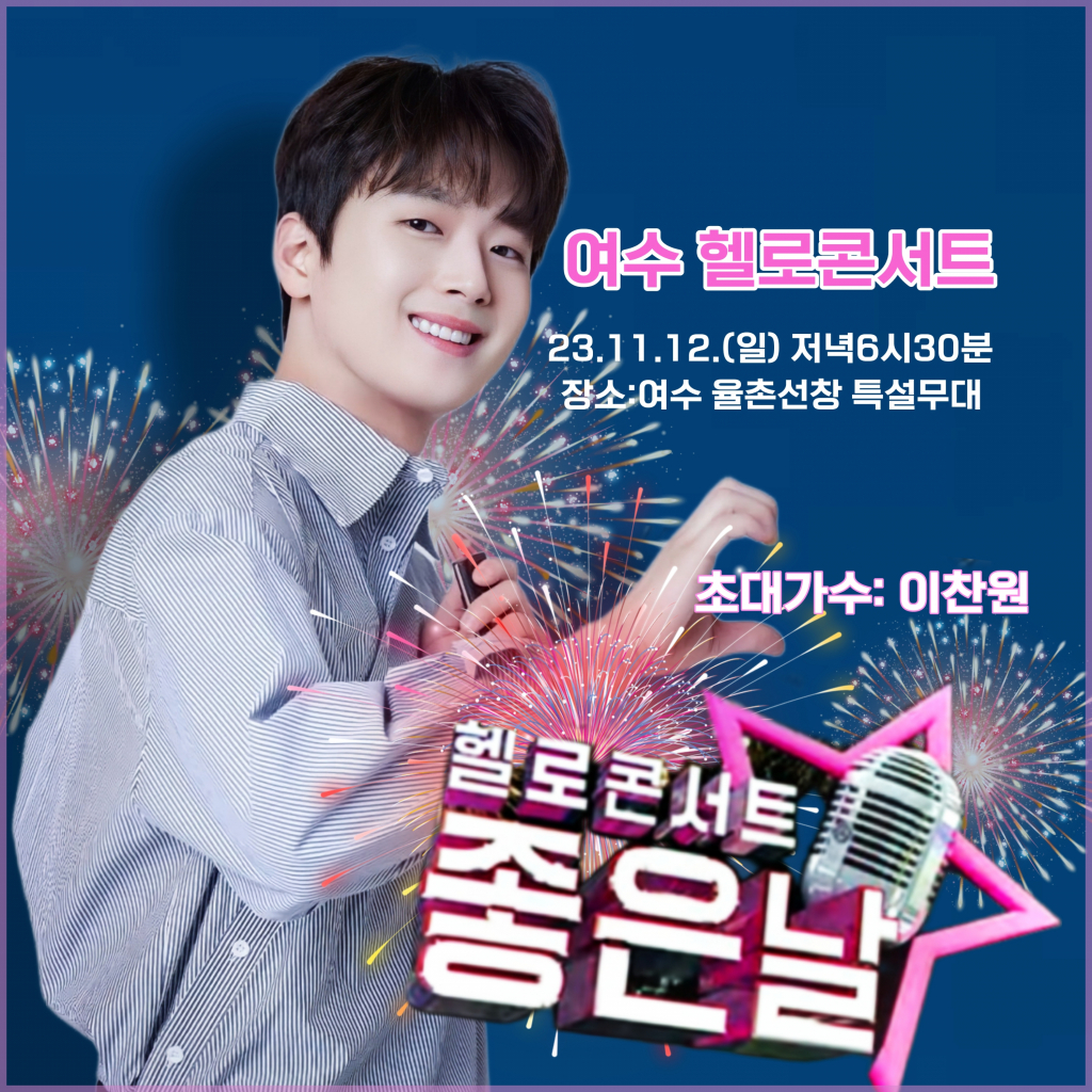 이찬원은 11월 12일 오후 6시 30분 전남 여수시 율촌면 율촌선창 특별무대에서 열리는 '여수 헬로콘서트 좋은날' 무대에 오른다.
