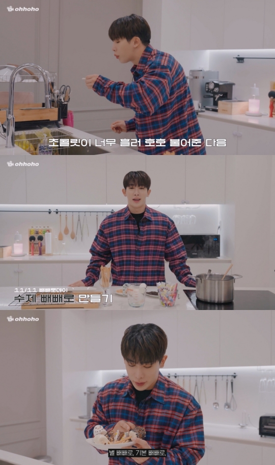 원호는 지난 11일 오후 8시 개인 유튜브 채널 '오호호(ohhoho)'를 통해 빼빼로데이 맞이 빼빼로 쿡방 영상을 게재했다.
