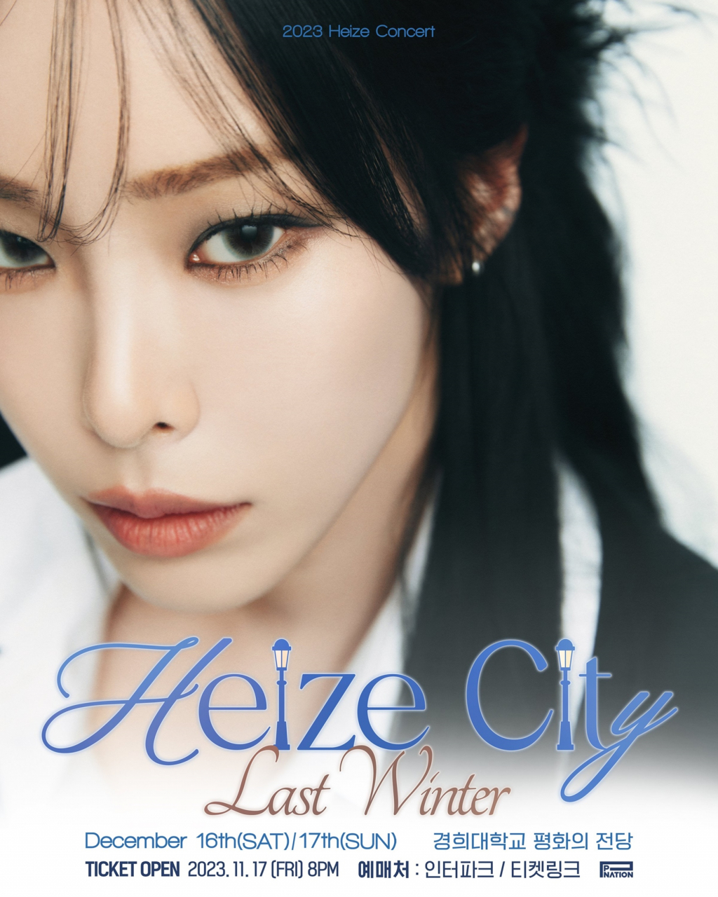 한편 '2023 Heize City Last Winter' 콘서트 티켓 예매는 오는 17일 오후 8시 온라인 예매사이트 인터파크와 티켓링크에서 진행된다.