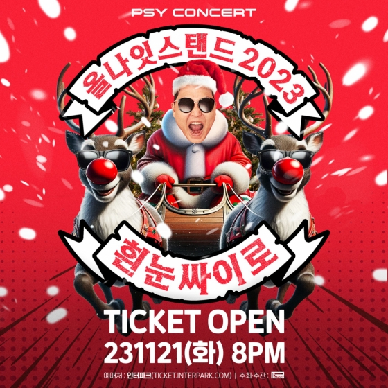 싸이는 21일 오후 8시 온라인 예매사이트 인터파크를 통해 연말 콘서트 '올나잇스탠드 2023' 티켓 예매를 오픈한다.