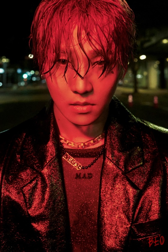 이번 티저 이미지에서 비오는 붉은빛 조명 아래 카리스마를 발산하고 있다. 웨트한 헤어 스타일에 가죽 재킷을 매치한 비오는 정면을 응시하는 날 선 눈빛과 'MAD'를 새긴 레터링 타투로 강렬한 아우라를 내뿜고 있다.