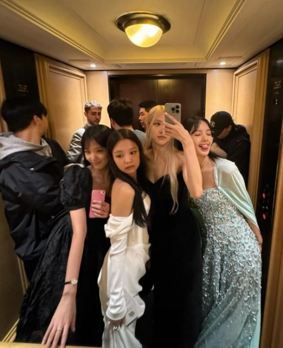 함께 공개한 사진에는 블랙핑크 멤버들과 함께 휴대폰 카메라로 사진을 찍고 있는 로제의 모습이 담겨 있다. 버킹엄 궁전에서 진행된 만찬을 통해 공식적으로 한자리에 모인 블랙핑크 멤버들은 각자의 개성을 살린 드레스를 입고 서로 밀착한 포즈로 끈끈한 우정을 자랑하고 있다. 소속사 YG엔터테인먼트와 재계약 관련 소식이 아직 들리지 않는 가운데, 블랙핑크는 오랜만에 '완전체'로 뭉쳐 팬들의 반가움을 샀다.