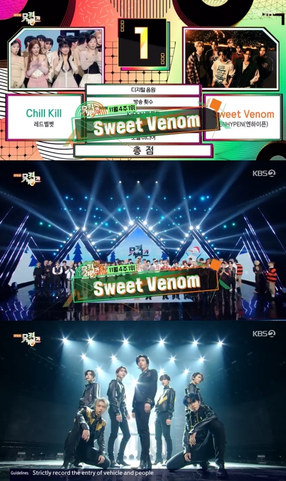 그룹 엔하이픈이 'Sweet Venom'으로 뮤직뱅크'에서 1위를 차지했다.