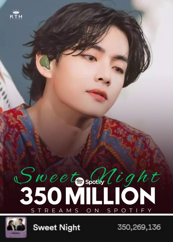 뷔의 'Sweet Night'은 최근 스포티파이 스트리밍 3억 5000만을 넘어섰다.