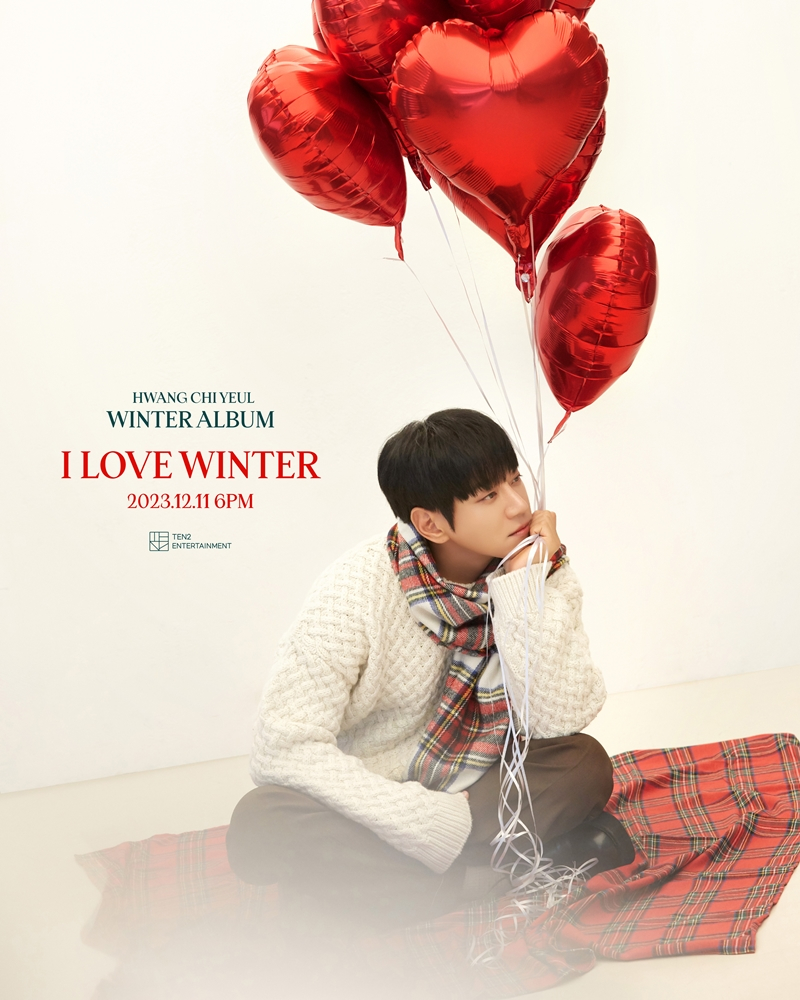 공개된 사진에는 연말 분위기 속 황치열이 포인트 컬러 레드와 어우러진 모습이 담겼다. 화이트 니트에 체크 목도리를 매치해 포근한 분위기로 시선을 사로잡았고, 설렘 유발하는 따뜻한 눈빛으로 보는 이들을 매료시켰다. 특히 한 손 가득 하트 풍선을 들고 있는 모습에서는 다가오는 연말을 맞이하는 분위기로 신보에 대한 기대감을 높였다.