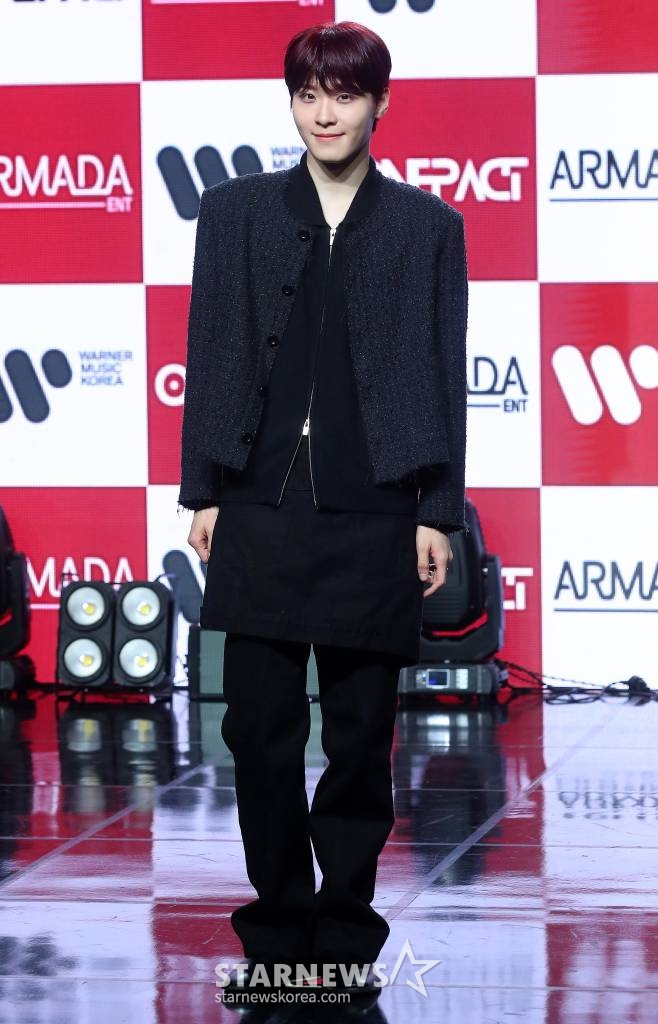 그룹 원팩트(ONE PACT) 성민이 30일 오후 서울 강남구 청담동 일지아트홀에서 진행된 첫 번째 미니앨범 '모멘트(Moment)' 발매 기념 쇼케이스에 참석해 포즈를 취하고 있다. 원팩트의 이번 앨범에는 타이틀곡 '좋겠다' 외에도 '멋진 거', '지오에이티(G.O.A.T)', '러시 인 투 유(RUSH IN 2 U)', '진행중', '일루전(illusion)' 등 총 여섯 곡이 수록됐다. 2023.11.30 /사진=김창현