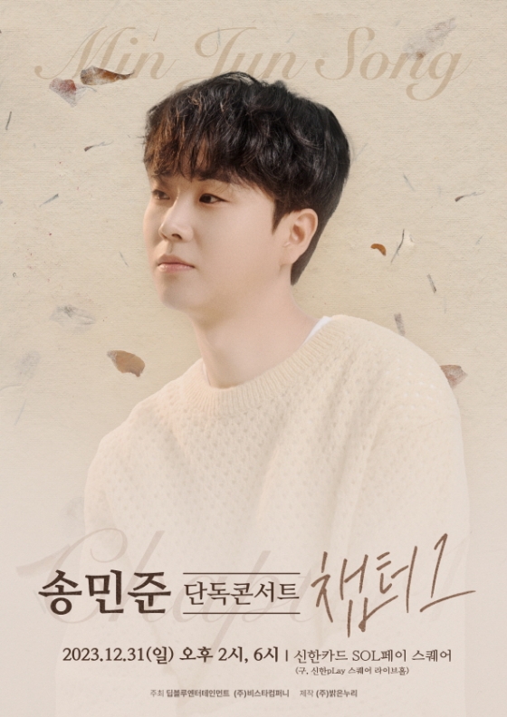 한편, 송민준의 첫 번째 단독 콘서트 '챕터 1'은 오는 12월 31일 신한카드 SOL페이 스퀘어(구 신한pLay스퀘어라이브홀)에서 개최된다.