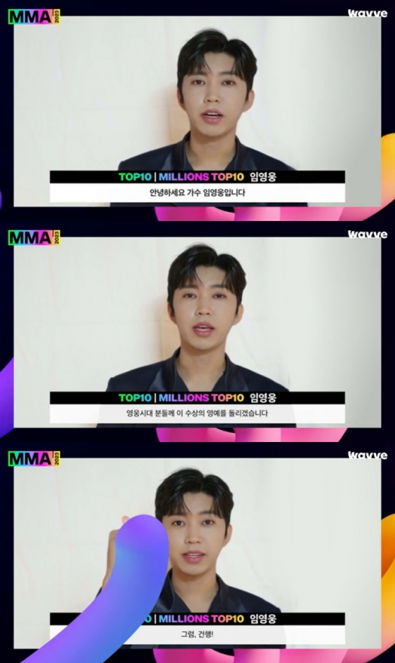 이날 시상식에 참석하지 못한 임영웅은 영상을 통해 대신 수상 소감을 전했다.