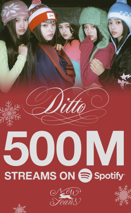 그룹 뉴진스(NewJeans, 민지, 하니, 다니엘, 해린, 혜인)의 'Ditto'가 스포티파이에서 5억 스트리밍을 돌파했다.