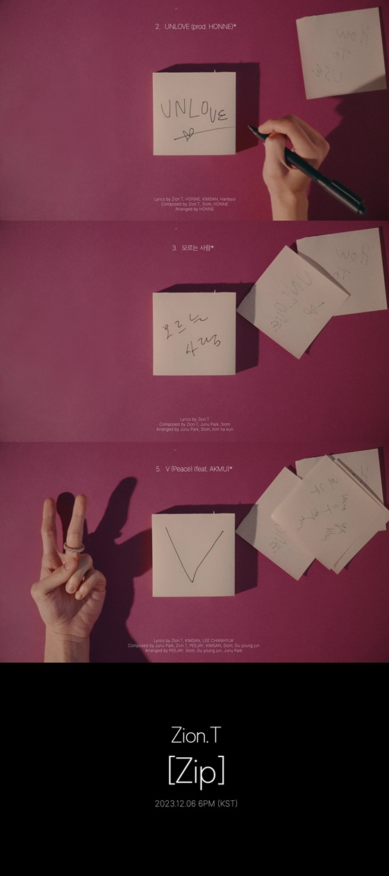 공개된 영상 속에는 새 앨범 정규3집 'Zip'의 트리플 타이틀곡 'UNLOVE'(prod. HONNE), '모르는 사람', 'V'(Peace) (feat. AKMU)를 포함해 'How To Use'(intro), '내가 좋아하는 것들'(feat. Benny Benack III), 'NOT FOR SALE', '투명인간', '불꺼진 방 안에서'(feat. 윤석철), '돌고래' ,'해피엔딩'까지 포스트잇에 직접 제목을 써 내려가는 모습이 담겨 있다.
